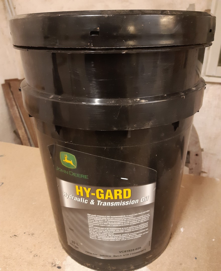 John Deere Hy-gard, hydraulik og transmissionsolie, 20 liter, har ikke været åbnet. Kr. 300,-